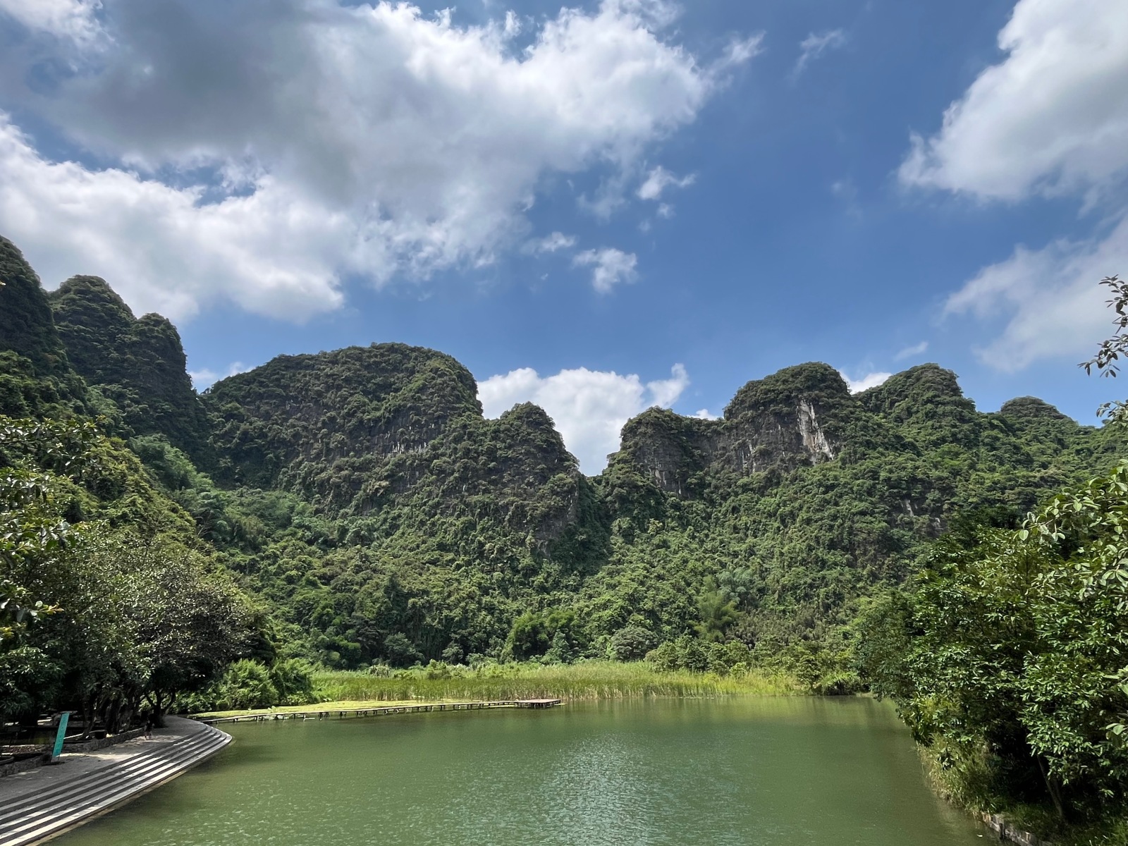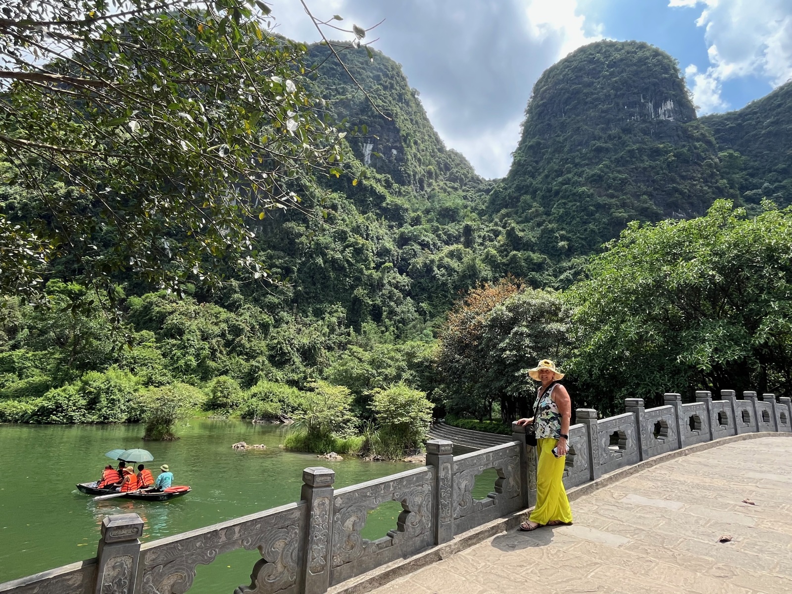Ninh Bình is about 90 kilometers south of Hanoi. It’s renowned for its dramatic karst landscapes, with limestone mountains rising from rice paddies and winding rivers. It’s a peaceful alternative to the more crowded tourist hubs like Ha Long Bay. We’d arranged to have a driver to get around in the limited time we had, and sure enough, he met us and suggested we go to visit the Tràng An Landscape Complex, which is a UNESCO World Heritage site.